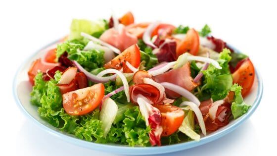 Chef Salad is a great lunch option to use up your leftover holiday ham. Combine lettuce, with tomatoes, cucumbers, onions, chopped eggs, cheese, and ham. Top with ranch dressing for a fresh and delicious lunch.